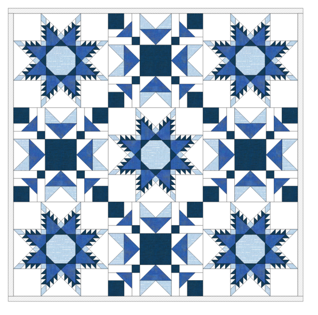 Create a stunning winter-themed masterpiece in this beautiful 54" x 54" Feathers & Flurries Quilt class! This project features two eye-catching blocks—a classic feathered star and a delicate snowflake block—that come together to form an elegant, seasonal statement piece.